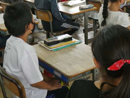 社会の時間でした。弥生時代の学びのようです。ちょうど授業が終わるタイミングでしたが、終わるときの机の上はしっかり整理されています。勉強だけではなく、こういう所作も大切ですよね。さすが6年生です。