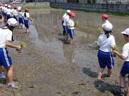 今日は、5年生が田植え体験を行いました。谷川中学校の近くまで田んぼを利用させていただきました。ご協力いただいたJAの方はじめ、関係者の皆様、本当にありがとうございました。