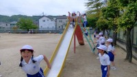 廊下をつかって、笛などの演奏を実施していました。感染対策も行いながら工夫して音楽の授業を行っています。