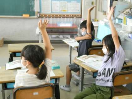算数の時間でした。わり算を学んでいました。手もしっかりあがっていて、みんな積極的に授業に参加してくれていました。