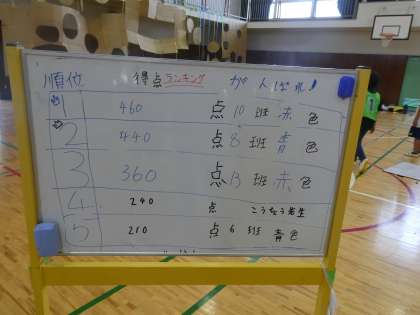 午前中のお祭りもそろそろ終わりです。校長先生も子どもたちに声をかけてもらい「くるくるボーリング」に挑戦。成績は4位でした!子どもたちに負けちゃいました。