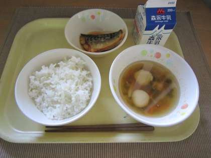 ごはん 五目汁 さばの煮つけ 牛乳
