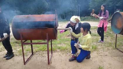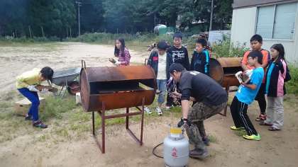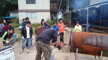 美味しいピザができるよう しっかり 火の番をしています。