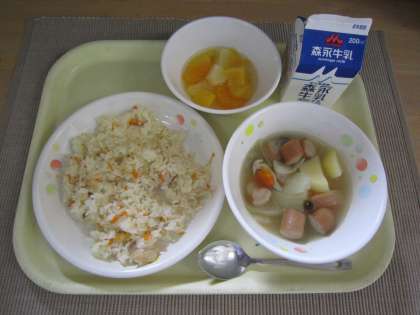 チキンピラフ ポトフ フルーツミックス 牛乳