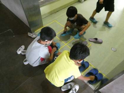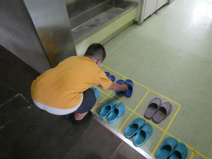 先日の朝礼集会で子どもたちにお願いしたスリッパ整理ですが、一年生がしっかり並べてくれました。お家でもお手伝いをがんばってくださいね。