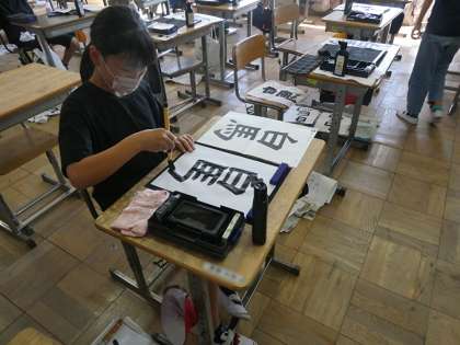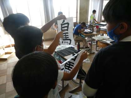 習字の時間に教室にいってみました。見事な筆づかいです。先生とのコミュニケーションもみんな楽しそうにしていました。