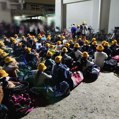 解散式を終えました。保護者の皆さんもたくさんお迎えに来ていただきありがとうございました。予定時間が1時間遅れまして申し訳ございません。ご協力いただきありがとうございます。
