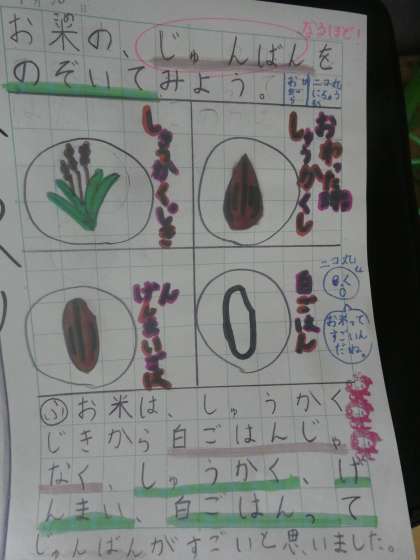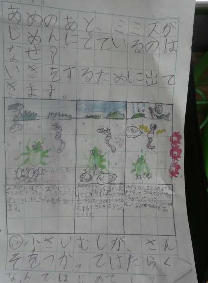 教室の前の自学ノートが更新されていました。ミミズの行動やお米のことが調べられていました。身近なものに興味をもつことはとても大切ですね。興味のあることをこれからもいろいろ調べていきましょう。