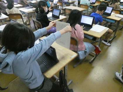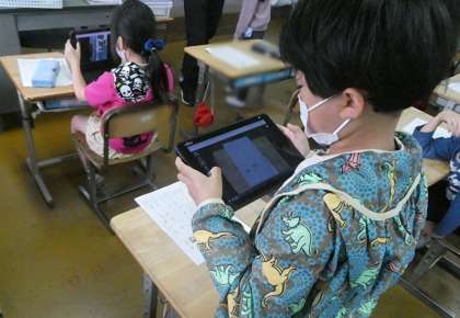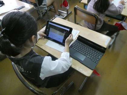 タブレットを使っての国語の時間でした。プリントをタブレットで撮影している風景もありました。文章読解とタブレット操作といろんな学びをしていました。