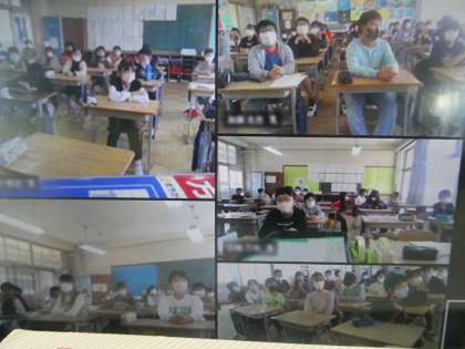 代表委員からの挨拶が続いています。各教室もオンラインでつながっています。ちょっとオンラインで各教室の様子も見てみました。