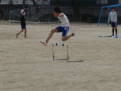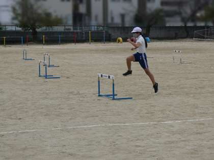 6年生が運動場でハードルタイム測定をしていました。飛ぶ、歩幅を考えながら、そしてタイムとそれぞれを意識しながらの体育授業です。いかに高くより低く、スピードを落とさずに前へ進めるか、難しい競技ですね。