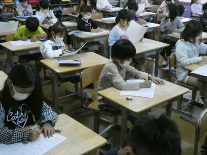朝の学級連絡で先生からの案内をしっかり聞いて連絡ノートに書いていました。1週間のスタートです。いいスタートが切れるように朝の確認は大切ですね。