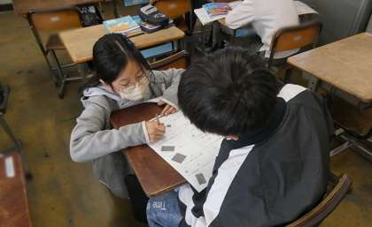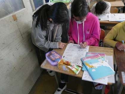 4年生も振り返りの算数の問題をみんなで教え合ったり、考えながら解いていました。予習と復習の繰り返しでどんどん学びが深まりますね。