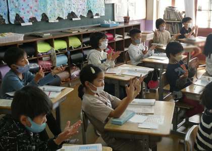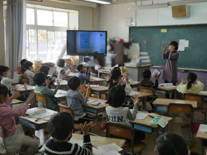 算数の時間で九九の計算問題をみんなでチャレンジしていました。早く、正確に答えらえれていてみんなすばらしいです。