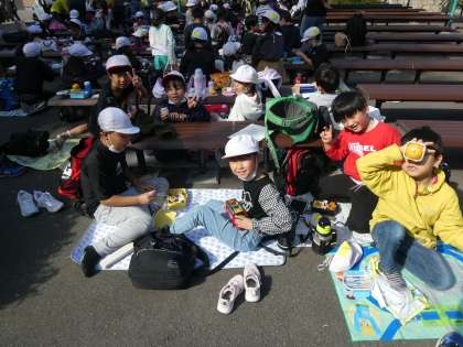 楽しくお昼ご飯。外で食べるお弁当は美味しいですね。