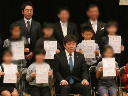 最後に市長の方々との記念撮影です。いい思い出ですね。クラスのみんなもオンラインで教室でスピーチを見てくれていたそうです。これは5年生みんなの思いもこもった記念撮影ですね。