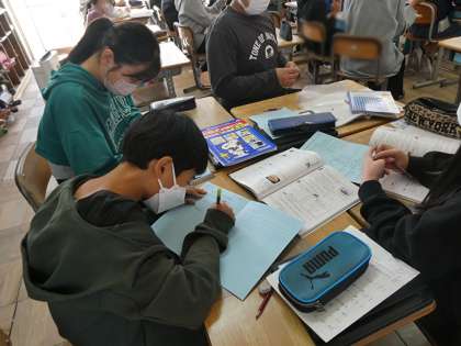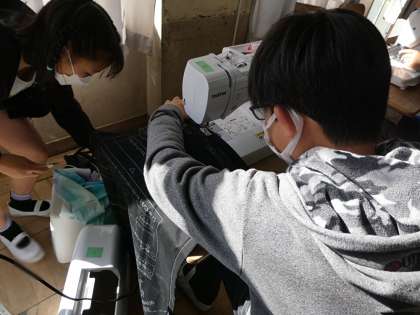 6年生の教室にいくと「全問正解」と校長先生にノートを見せてくれました。がんばったことが実ってよかったですね。すばらしいです。もし間違ったところがあったとしてもそこを復習することが大切な勉強です。隣の教室をのぞいてみると昨日紹介したエプロンのアイロンがけの続きでミシンで縫っていました。みんな器用です。