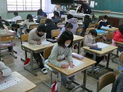 今日はカタカナのテストを行っていました。みんな真剣な顔でテストに臨んでいました。
