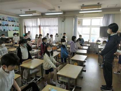 2年生の朝の会で日直さんのがんばりをみました。とてもよい声で元気に日直の仕事をしてくれていました。