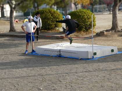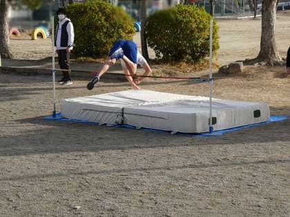 6年生が体育の授業で走り高跳びをしていました。みんなどの高さまで飛べるかな。飛び方で技を披露してくれている子どもたちもいました。