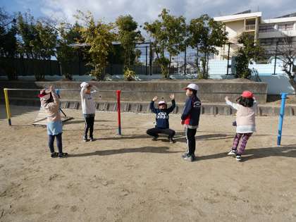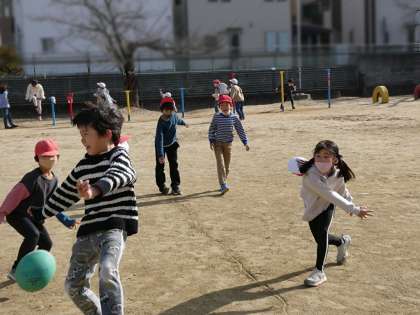 みんな元気に昼休みに運動場で遊んでいました。ボール遊びや鉄棒などみんな上手です。