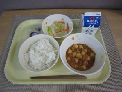 ごはん マーボードーフ ふゆやさいのサラダ 和風ドレッシング 牛乳