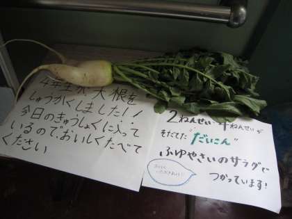 今日は特別に、2年生と4年生が泉小学校で育てた大根も使い、おいしくいただきました。いつも以上に「おいしい」の声がたくさん聞こえてきました^^