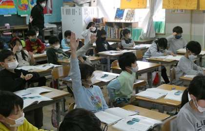 国語の授業でした。先生の質問にしっかり手をあげてこたえていました。みんないいチャレンジです。