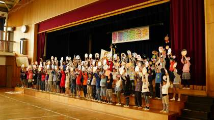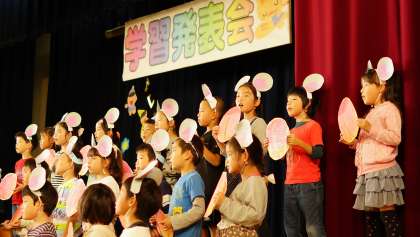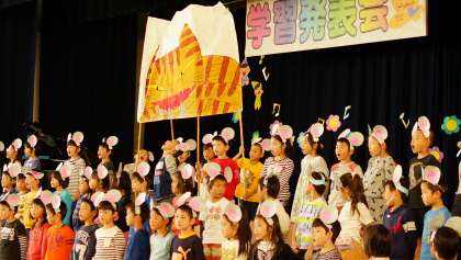 「にゃーご」の お話を 音楽に合わせて 発表してくれました。
