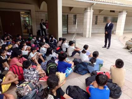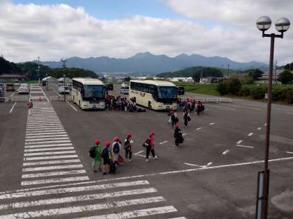 お世話になった宿泊施設の退館式を行いました。施設の皆さん、本当にありがとうございました。