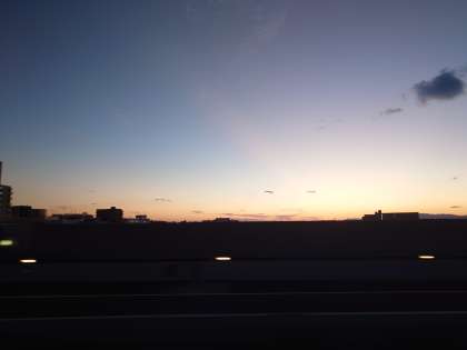 高速を降りました。あとは学校に向かって下道を走ります。お時間が少し前回案内したものよりも遅れる可能性もあります。申し訳ございません。