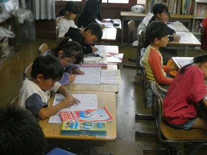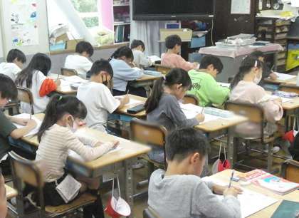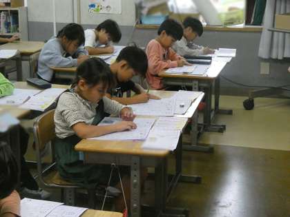 漢字ドリルをしていました。しっかり丁寧に漢字を書いていました。字を書くときはみんな集中しています。