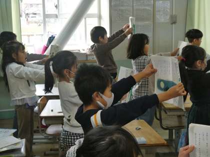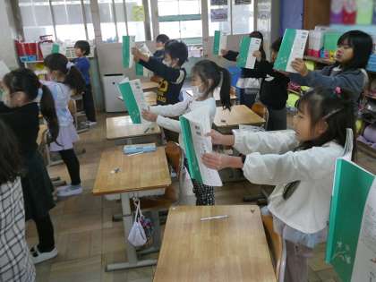 1年生の隣のクラスでは国語の時間に本読みをしていました。みんな大きな声でしっかり読んでいました。読みづらい文章も先生と一緒に確認して、キレイに発声できていました。