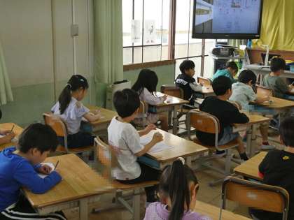 1年生はひらがなをキレイに書く練習をしていました。きれいに字を書くことはとても大切ですね。