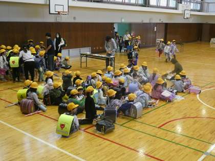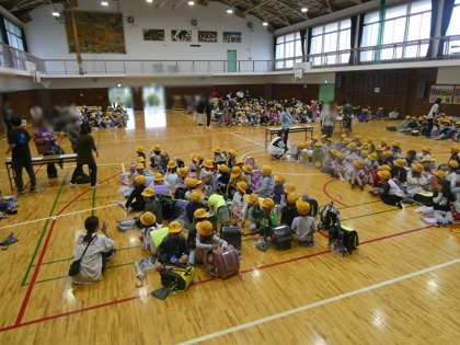 本日は地震が発生したことを想定しての避難、引き渡し訓練を実施しました。