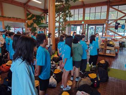 退舎式を行い、予定どおりに宿舎を出発しました。