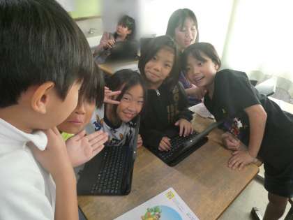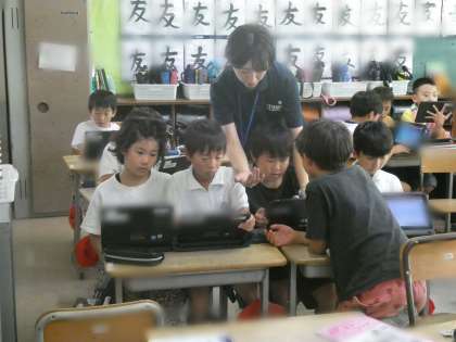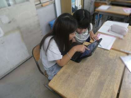 タブレットでパワーポイントを活用して資料作りをしていました。