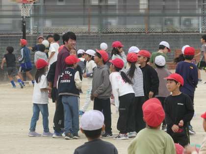 休み時間に先生たちも子どもたちと一緒に汗を流していました。やっぱり先生と一緒に遊ぶとさらに楽しいですよね。
