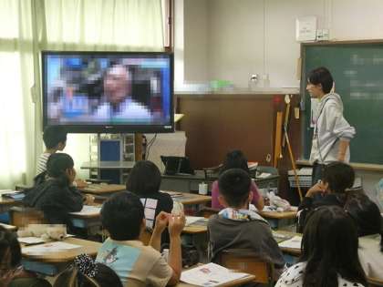 4年生が「天神祭」について動画を見ながらの授業を行っていました。
