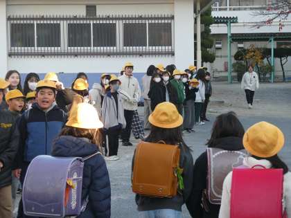 朝の登校時に先日の朝礼集会であいさつについてメッセージを全校に投げてくれた6年生のみんなが自主的に朝のあいさつ活動を行ってくれていました。