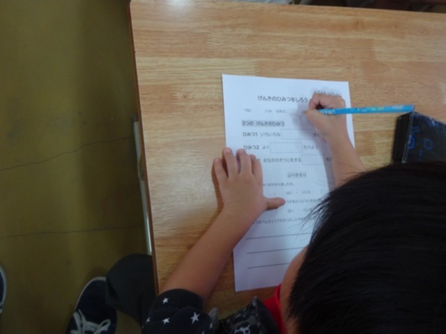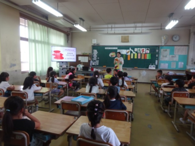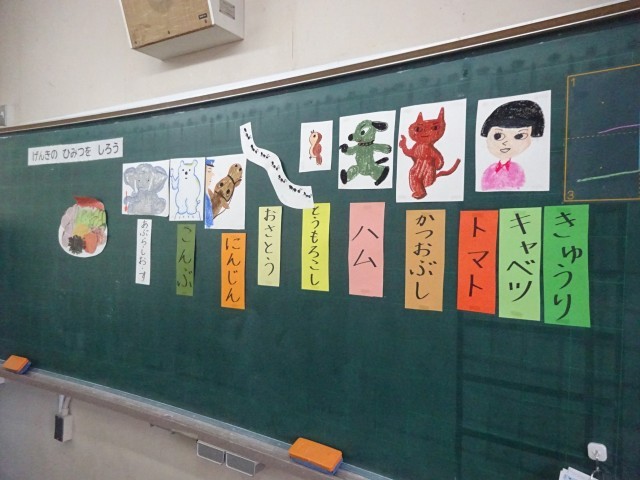 今日は1年生で食育「げんきのひみつをしろう」の授業がありました。