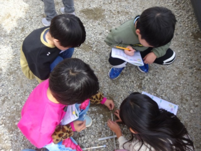 日なたと日かげの地面をさわったり、温度をしらべたりしました。