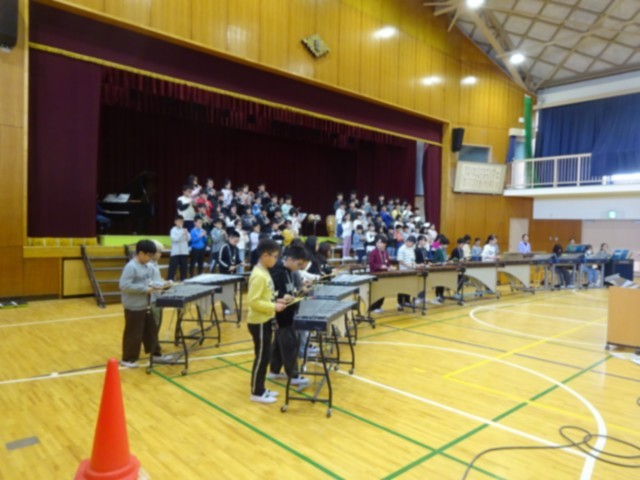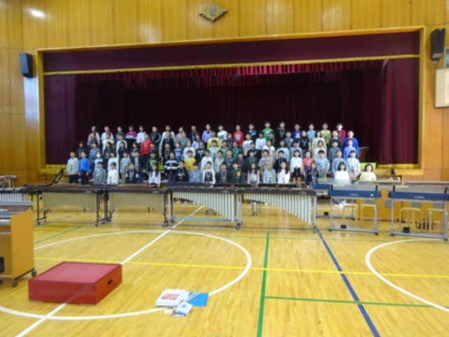 4年生 合唱「いつまでも伝えたい」  合奏「名探偵コナン メインテーマ」「怪獣の花唄」