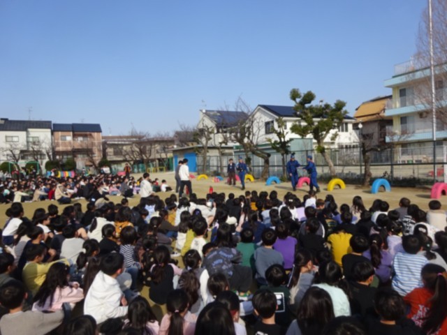 職員室や校長室を横断して運動場に逃げました。