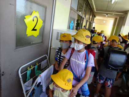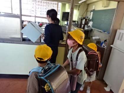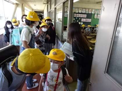 今年度は、感染予防のために地区集会を開けずにいましたが、万一のために各地区に分かれて下校する練習をしました。班長さんが1年生を、副班長さんが2年生を教室まで迎えに行って、各地区の集合場所までつれていってくれます。