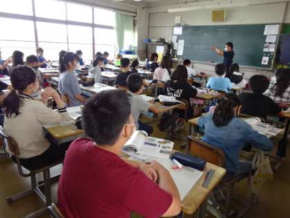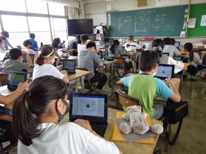 この写真を撮った時、6年生は全クラス教室での授業でした。