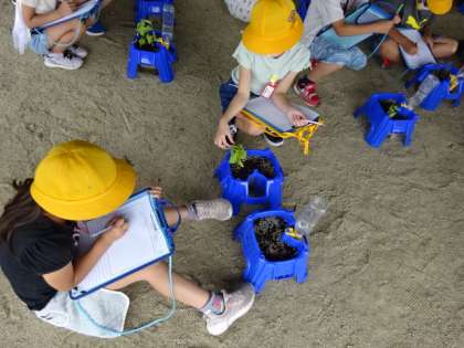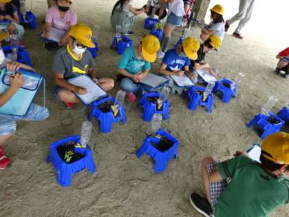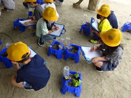 1時間目の様子です。トマトかキュウリの種を植えて、苗の成長を観察しています。うまく書けましたか?観察記録を「いっぱいかく!」と気合の入った声が聞こえてきました。