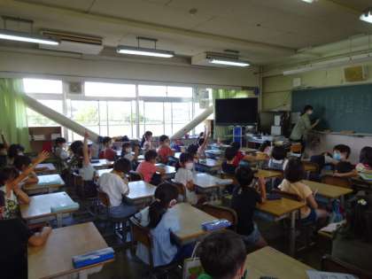 2学期の係を決めています。自分がやるとしたら何か、考えて手を挙げて立候補しているのがえらいですね。