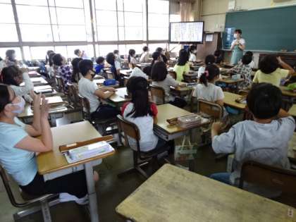3年1組では、音楽を聴きながらディスプレイの歌詞を見ていました。先生が、「歌ったらあかんよ」と言っていました。そしてこの後、小さな声で歌を口ずさみながら手話で歌を練習していました。