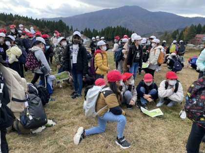 小高い丘に集合して、オリエンテーリングに班ごとに出発しました。地図を見てちょっと作戦会議をして、時間差をつけてスタートしました。
